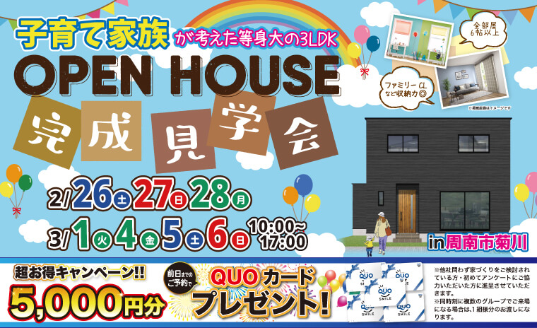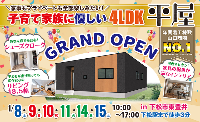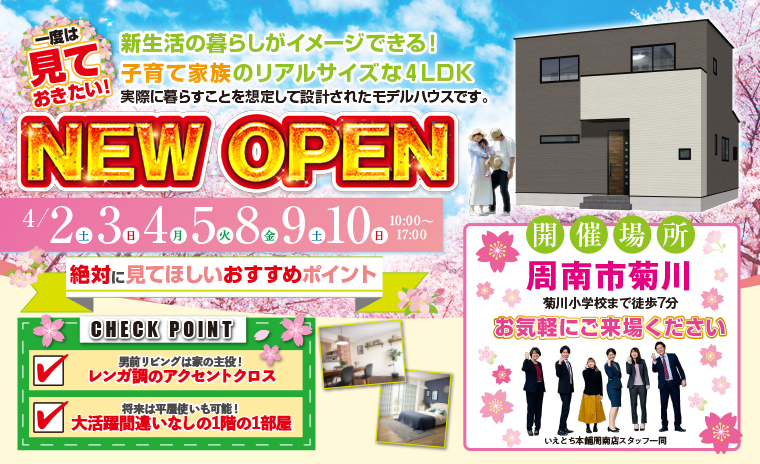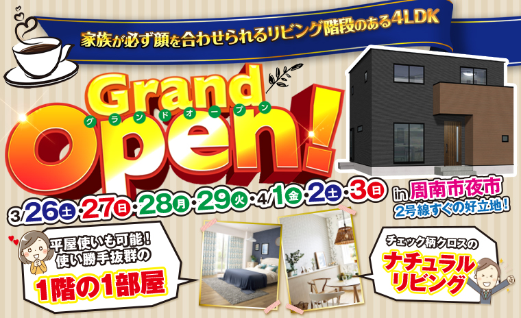 新生活の暮らしがイメージできる!子育て家族のリアルサイズな4LDK GRAND OPEN!in周南市菊川