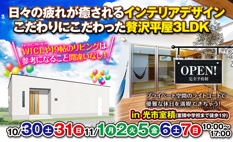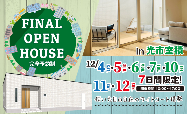 【光市室積】ライトコートに光が差し込む 大人気モデルハウス最後の見学会