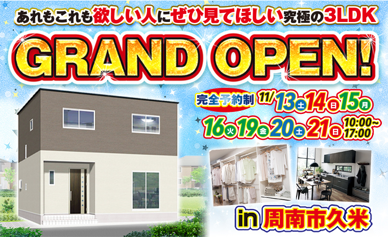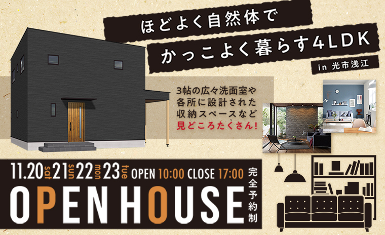 【光市浅江】ほどよく自然体でかっこよく暮らす4LDK OPEN!!