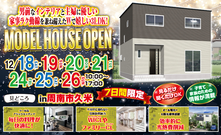 【周南市久米】男前インテリアと主婦に優しい家事ラク動線を兼ね備えたWで嬉しい3LDK