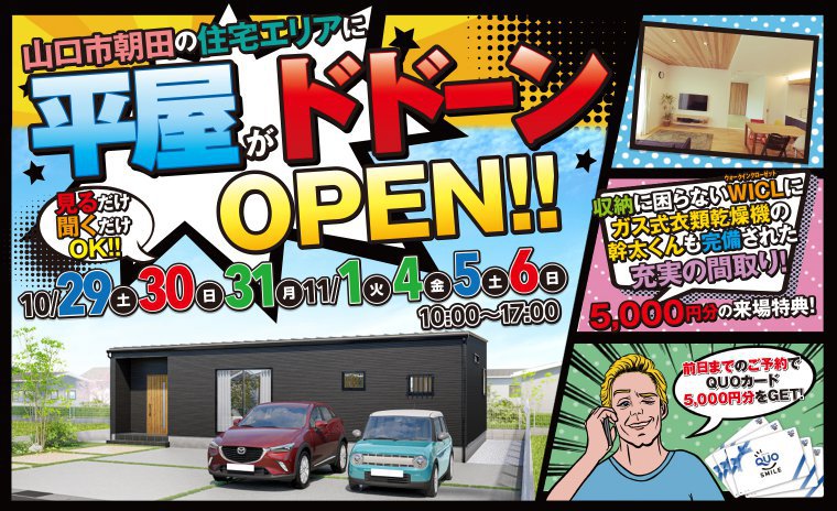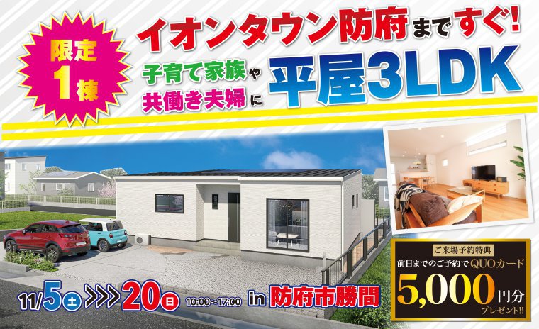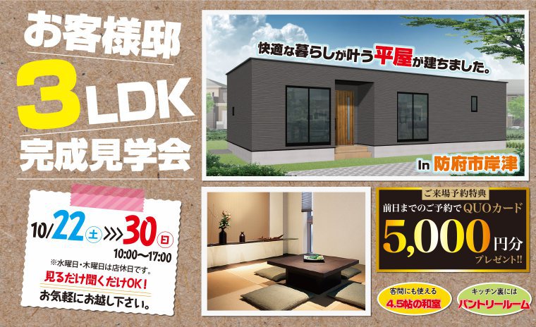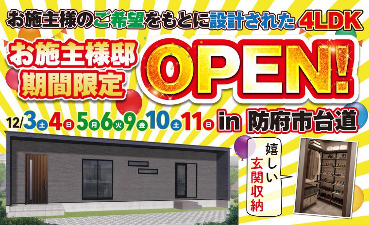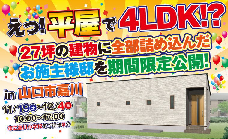 【防府市】4LDKの平屋が見れる!防府市台道にて期間限定公開!