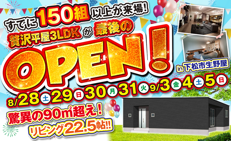 【下松市生野屋】すでに150組が来場!驚異の90㎡の贅沢平屋3LDKが最後のOPEN!