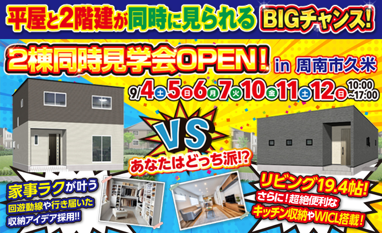 【周南市久米】平屋と2階建が同時に見れるBIGチャンス!2棟同時見学会