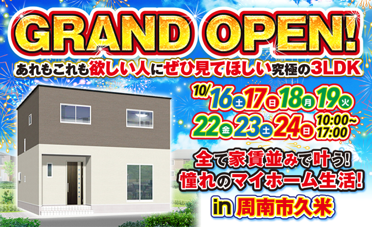 【周南市久米】あれもこれも欲しい人に必見!家賃並みで叶う究極の3LDK!