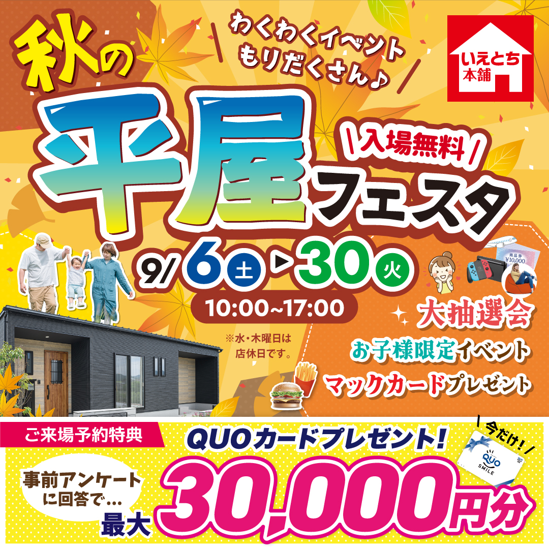 【長門店】秋の平屋フェスタ開催!豪華抽選会・お子様イベントも楽しめる特別企画☆