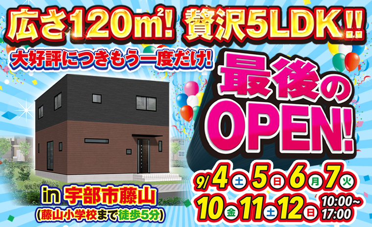 【宇部市藤山】広さ120m²!贅沢5LDK‼大好評のためもう一度だけ‼最後のOPEN!