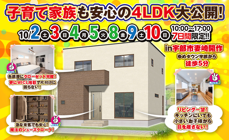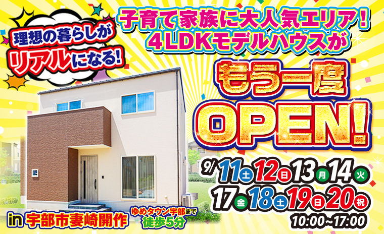 【宇部市妻崎開作】子育て家族に大人気エリア!4LDKモデルハウスがもう一度OPEN!