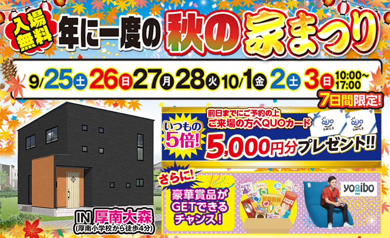 【宇部市厚南大森】イベントを楽しみながら家づくりを考える。例年大盛況の秋の家まつり開催!