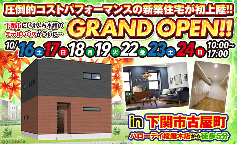 【下関市古屋町】圧倒的コストパフォーマンスの新築住宅が初上陸!