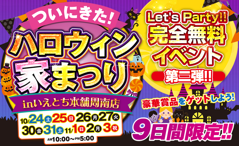 ~ 昨年大盛況のハロウィンパーティーが今年も開催!(周南店)詳しく見るこのイベントは終了しました。 日