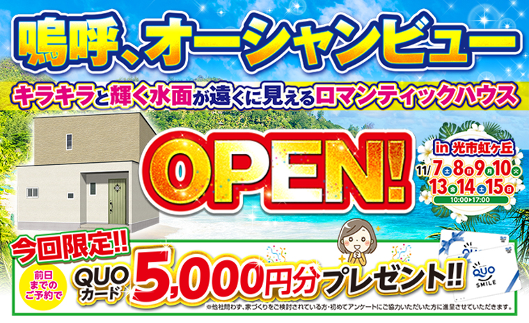 ~ 【光市虹ヶ丘】遠くに海が見えるロマンティックハウスOPEN!詳しく見るこのイベントは終了しました。 日