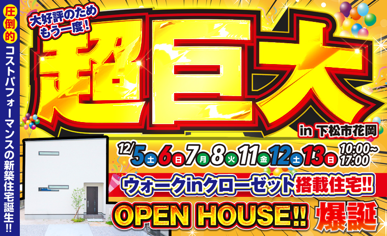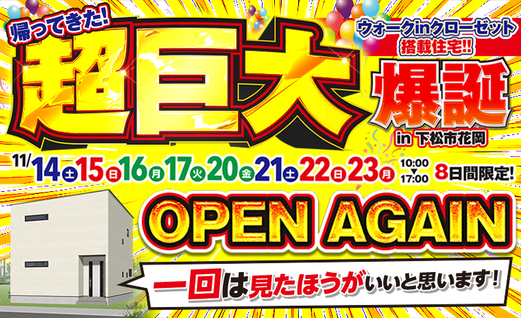 ~ 【下松市花岡】超巨大ウォークインクローゼット搭載新築住宅OPEN!詳しく見るこのイベントは終了しました。 日