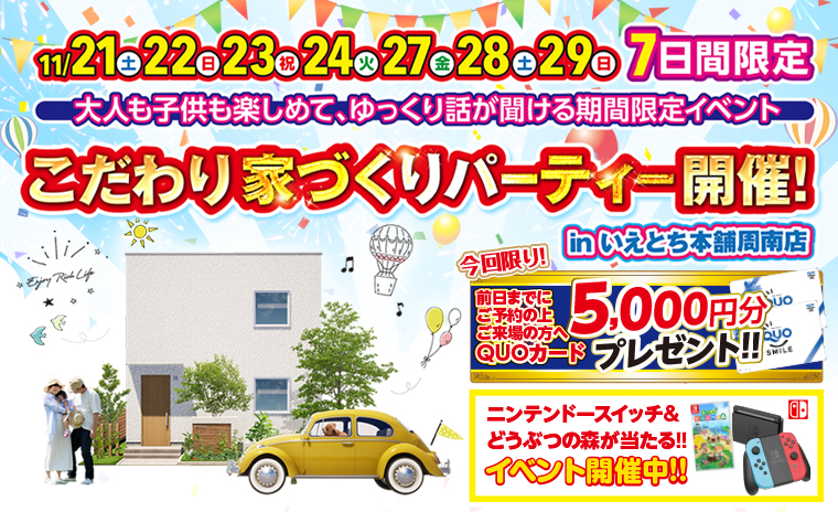 ~ 家づくりをこだわりたい方必見!こだわり家づくりパーティー開催!詳しく見るこのイベントは終了しました。 日