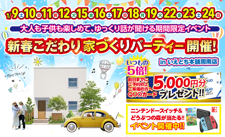 ~ 新春こだわり家づくりパーティー開催!in周南店詳しく見るこのイベントは終了しました。 日