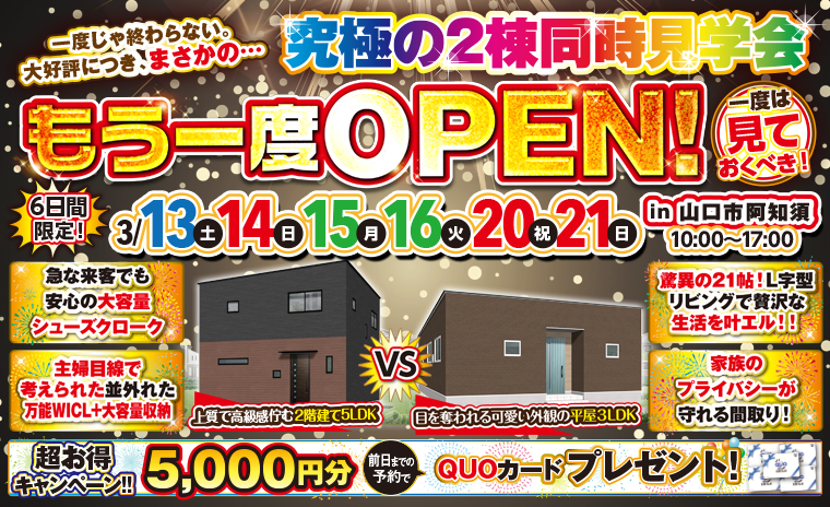 【山口市阿知須】こだわりを詰め込んだ究極の2棟同時見学会