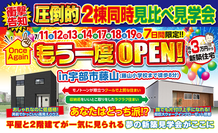 【宇部市藤山】圧倒的2棟同時見比べ見学会をもう一度OPEN!