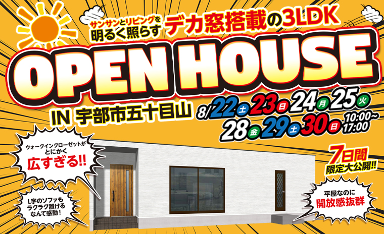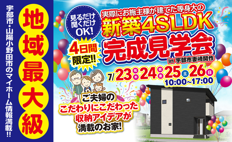【宇部市妻崎開作】実際にお施主様が建てた等身大の新築4SLDK完成見学会