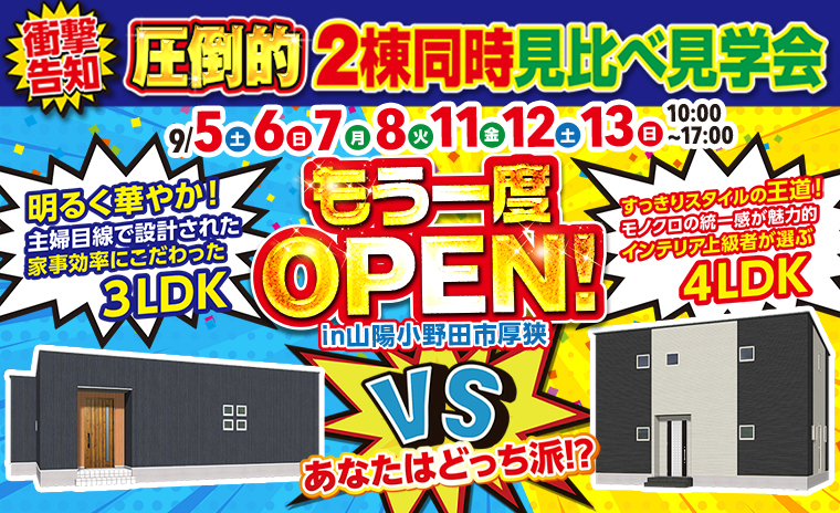 【山陽小野田市厚狭】2棟同時見比べ見学会がもう一度OPEN!