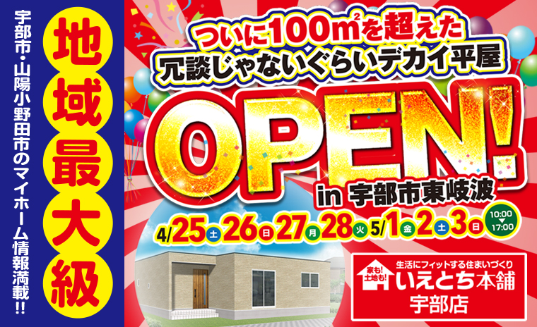 【宇部市東岐波】ついに100㎡を超えた!冗談じゃないくらいデカイ平屋OPEN