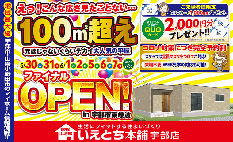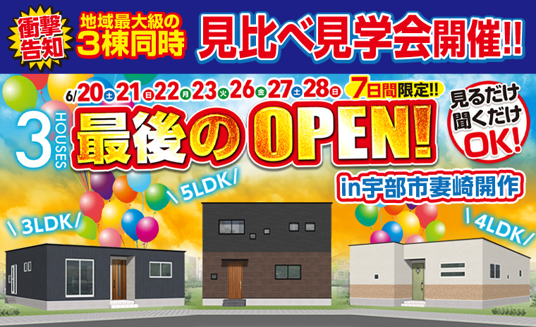【宇部市妻崎開作】3棟同時見学会 GRAND OPEN!