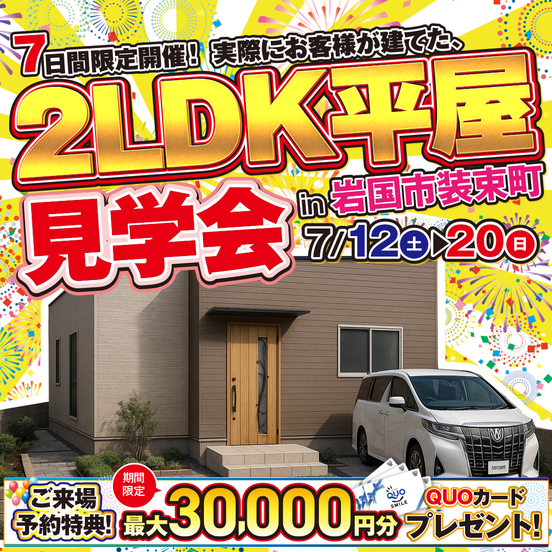 【岩国市】新築をご検討中の方必見!岩国市装束町でコンパクトかつ収納力抜群な平屋見学会開催!