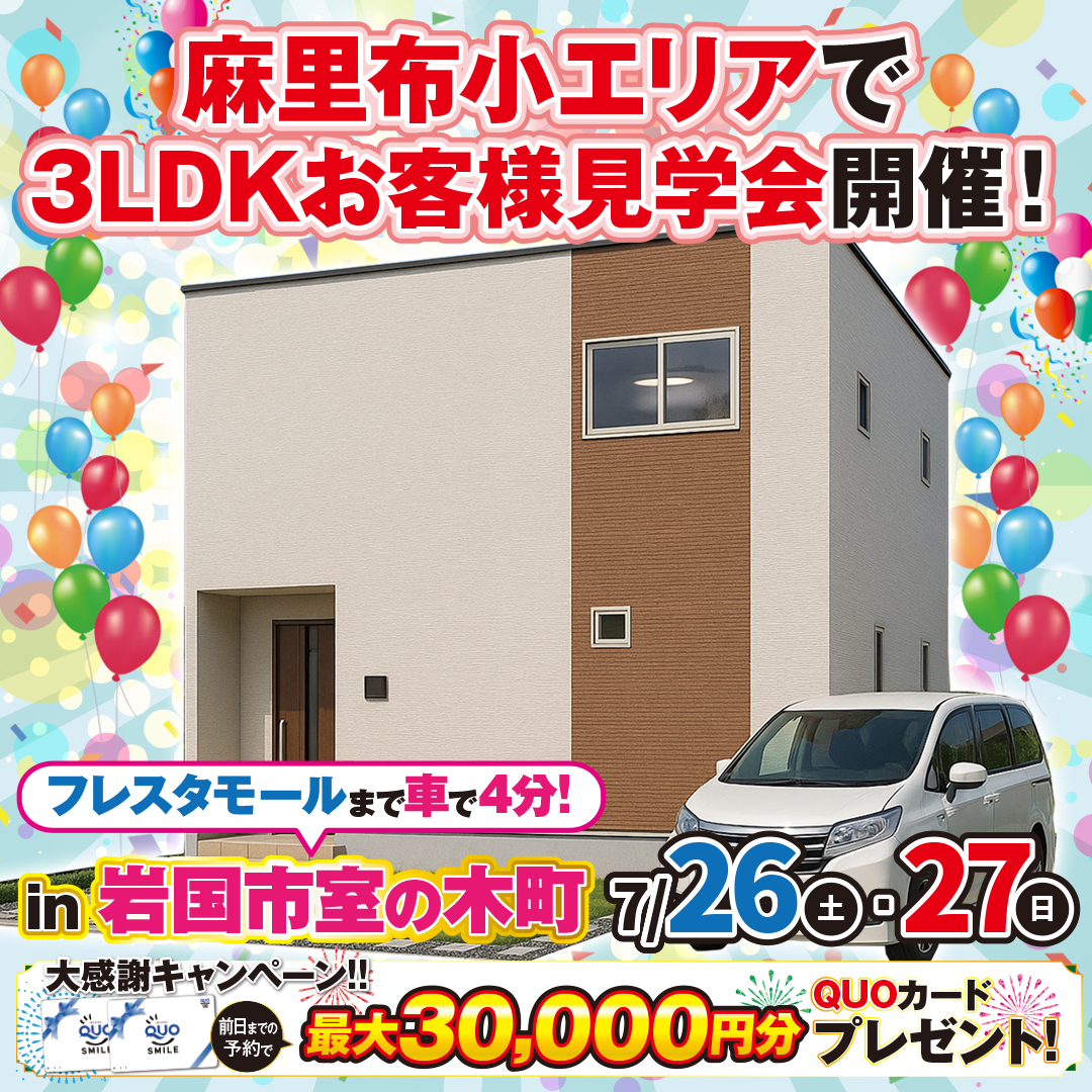 【岩国市】ひろびろLDK&抜群の収納力!岩国市室の木町で見学会開催!