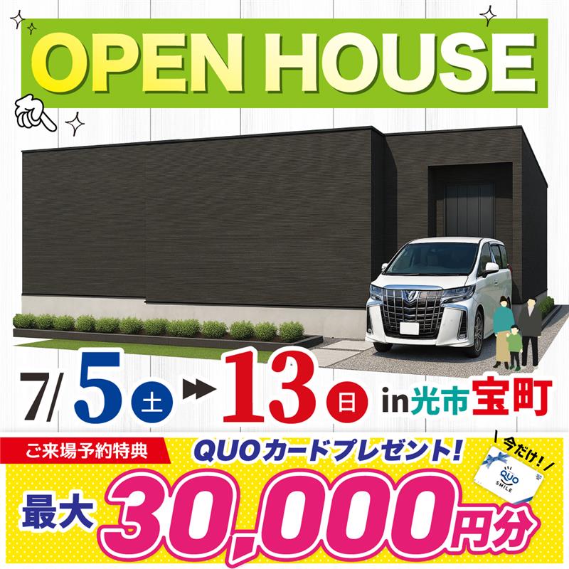 【光市】宝町で新築平屋見学会がOPEN!必見のこだわりポイントが満載!