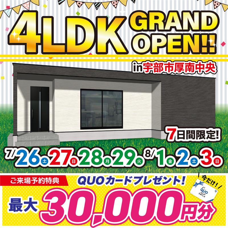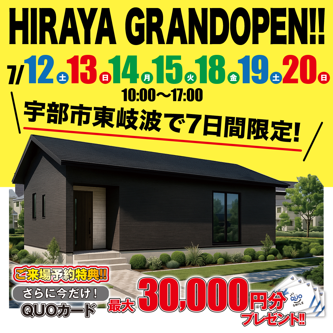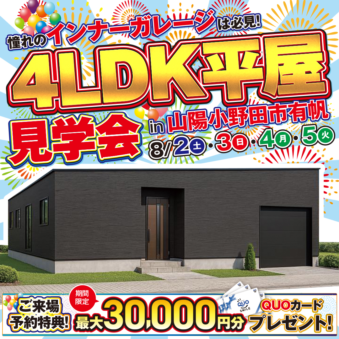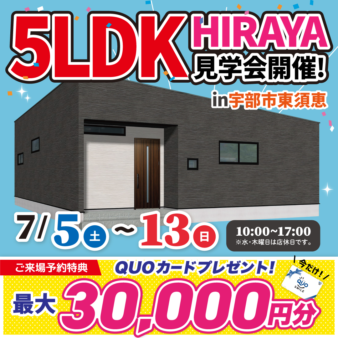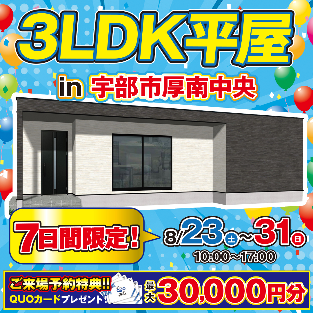 【宇部市】驚きの5LDK平屋!宇部市東須恵で7日間限定見学会開催!