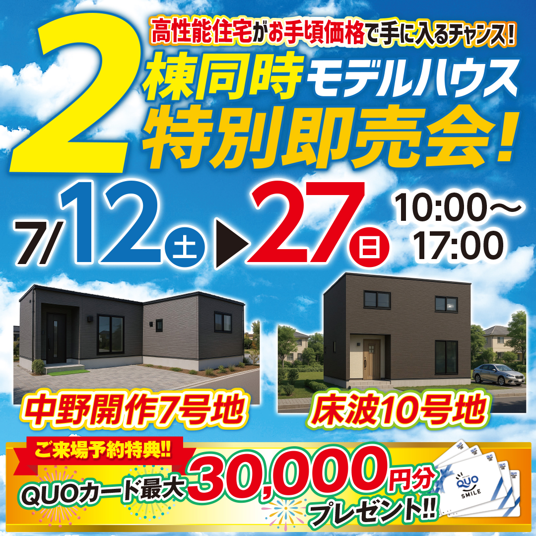 【宇部市】宇部市で2棟同時即売会開催!新築ご検討中の方は必見です!!