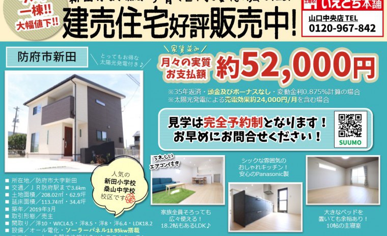 【防府市】この金額で持てる!限定1棟のモデルハウスは誰の手に!?リビング18帖!4LDK!