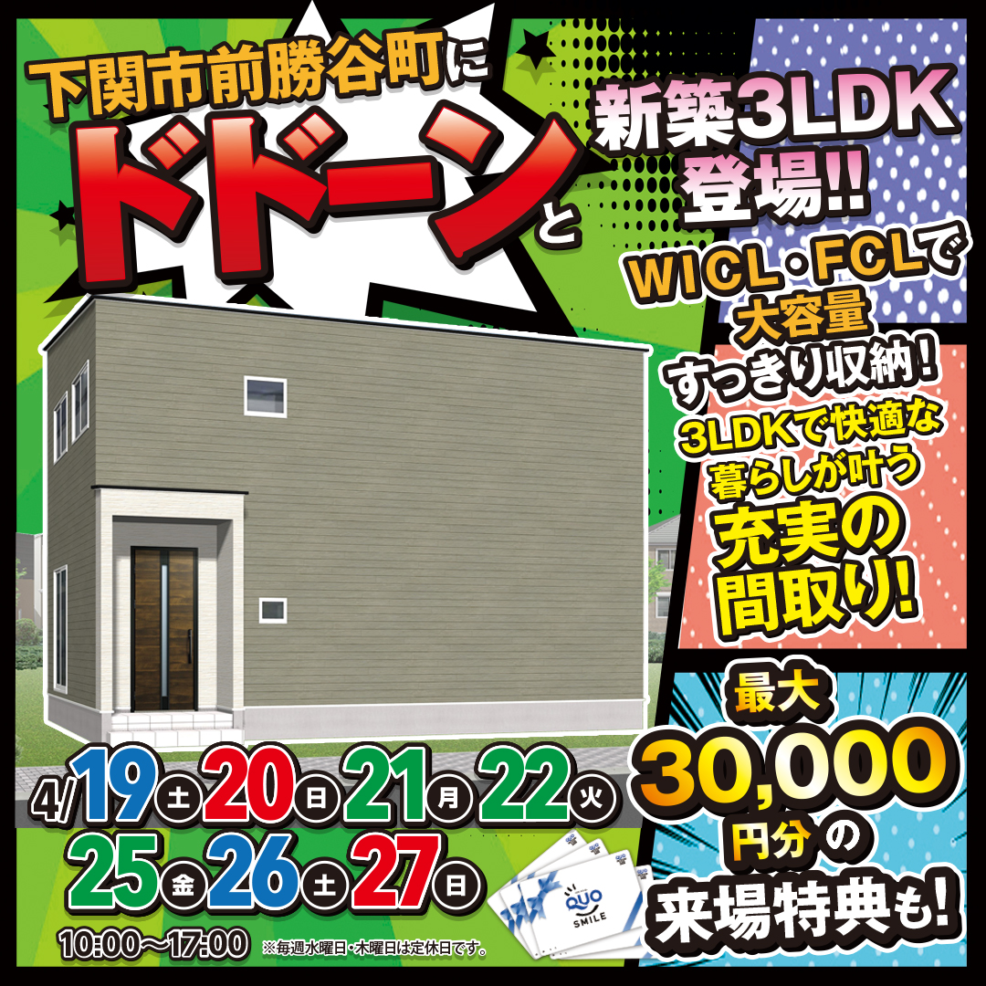 【31坪・下関市】安岡駅からすぐの好立地!収納力抜群の3LDK見学会開催!