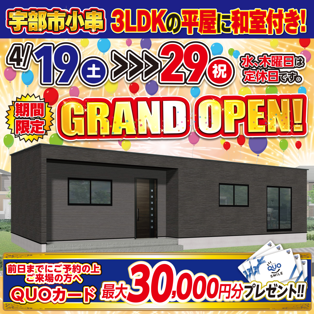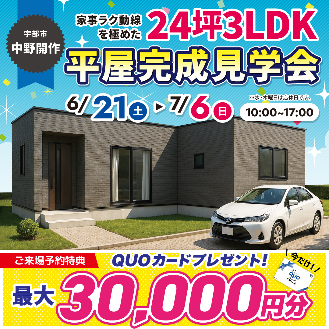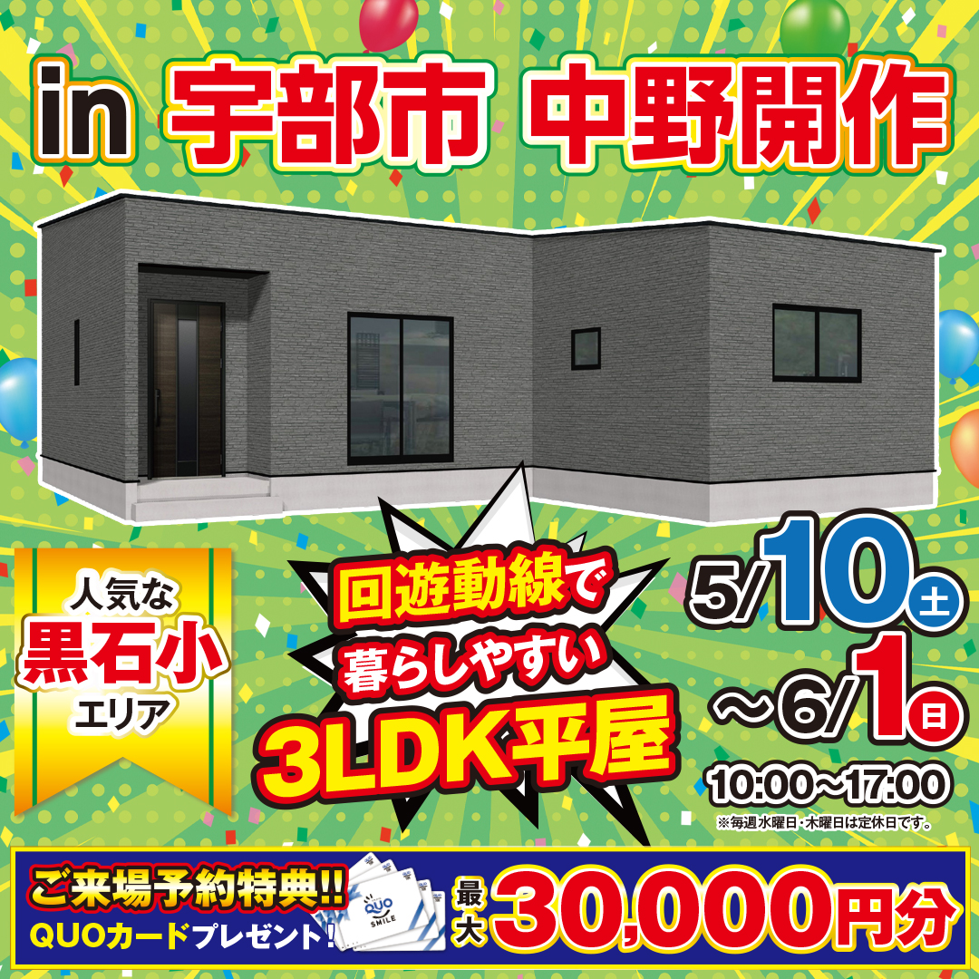 【宇部市】3LDKの平屋に和室付き!宇部市小串で必見の見学会がOPEN!