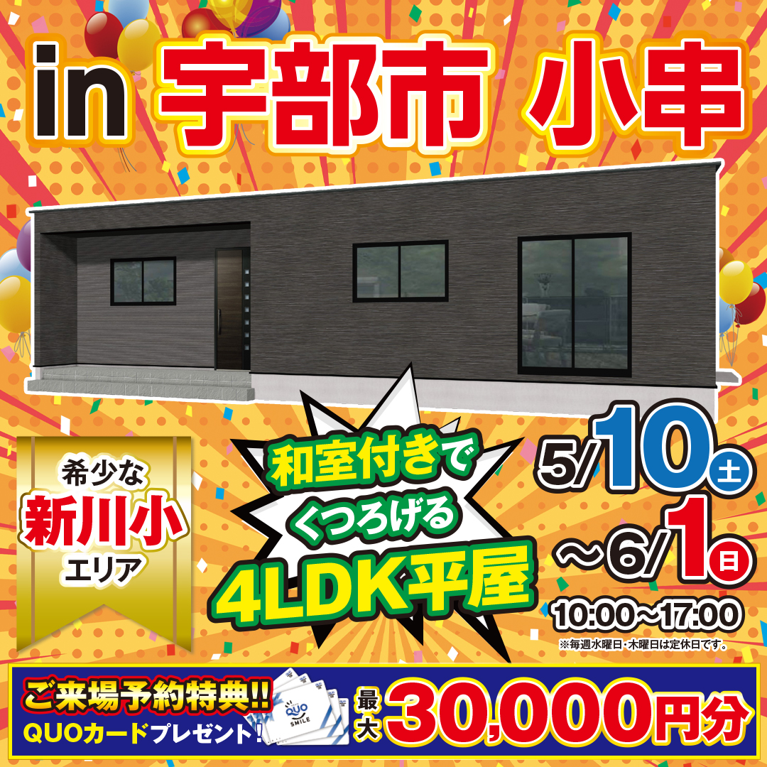 【宇部市】4LDKの平屋に和室付き!宇部市小串で必見の見学会がOPEN!