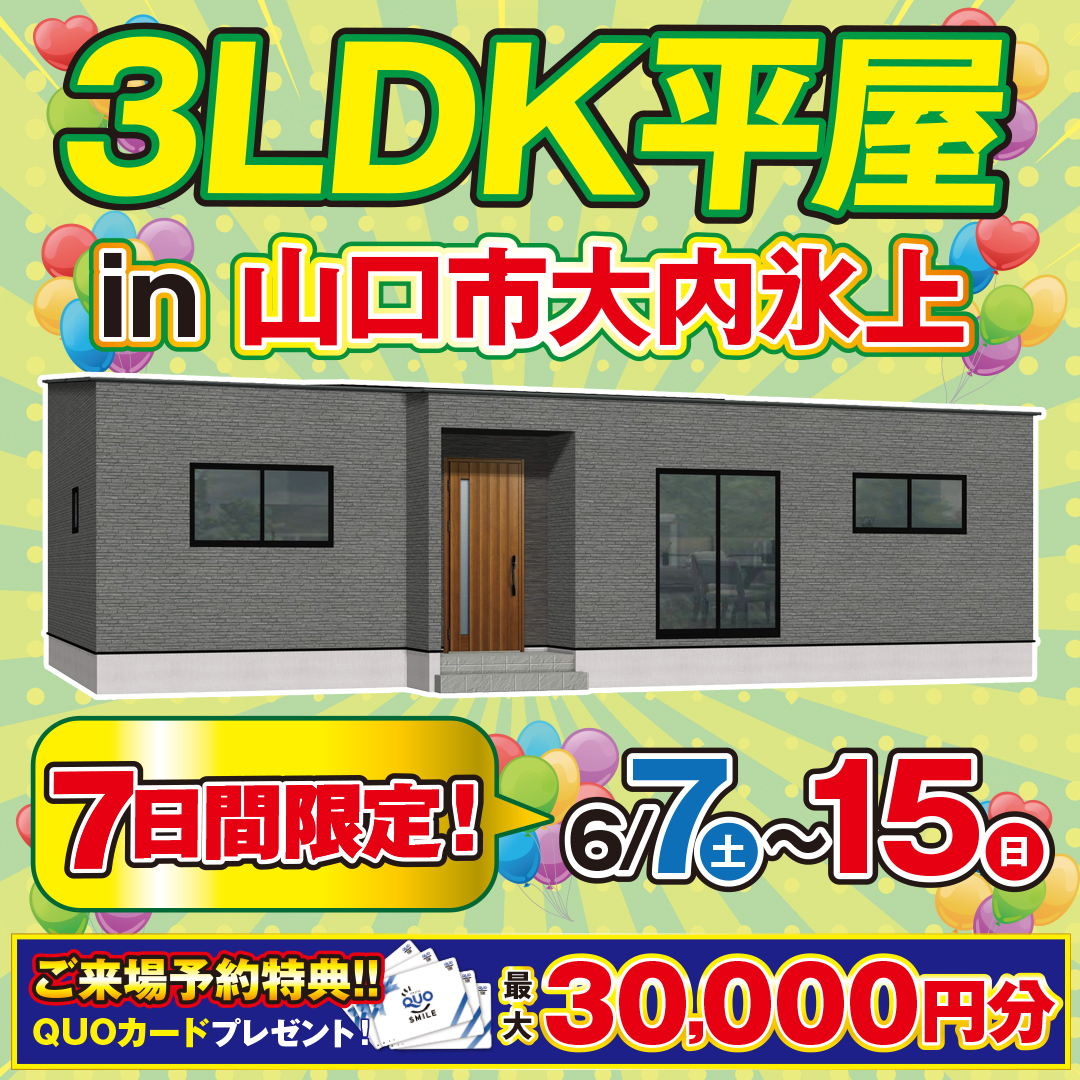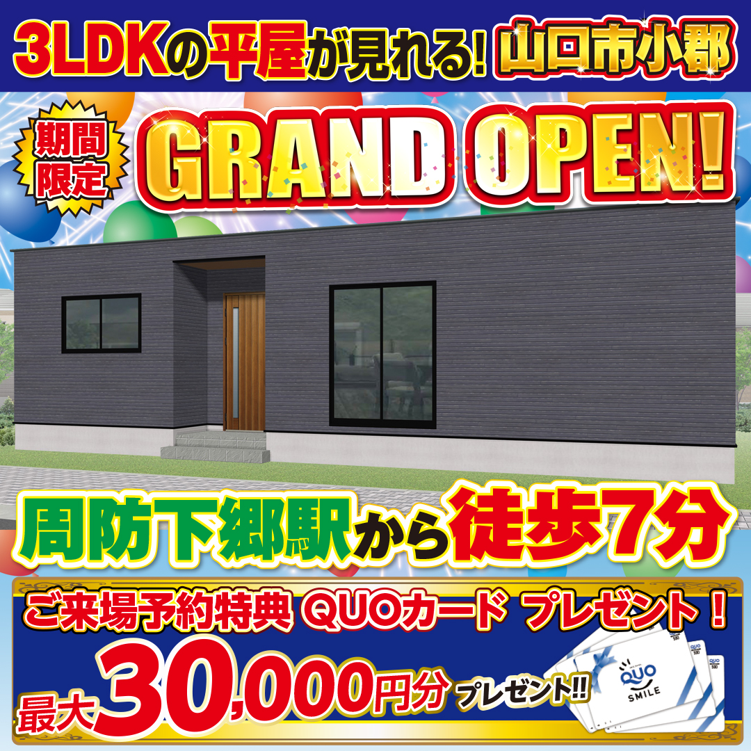 【山口市】周防下郷駅から徒歩7分!で平屋3LDK分譲住宅見学会OPEN!