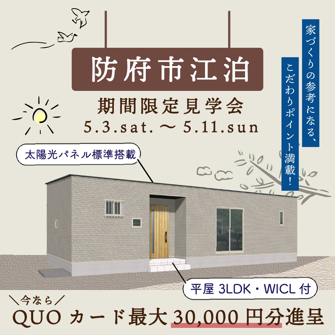 【防府市】防府市江泊で平屋見学会開催!凝縮×ゆとりを叶える、必見のお家です!