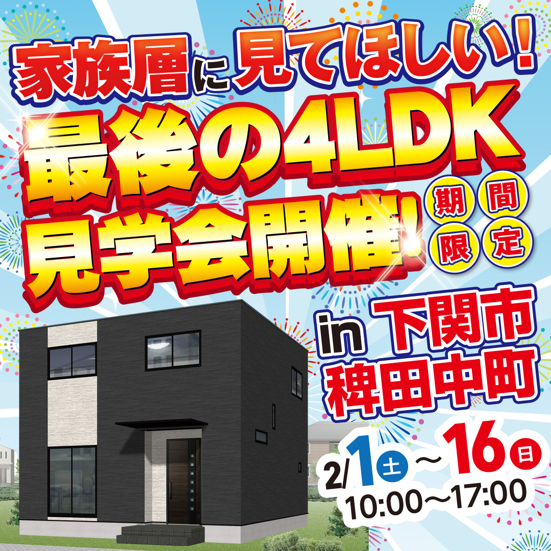 【下関市】ひろびろ19帖リビング!稗田中町で、期間限定の4LDK見学会を開催!