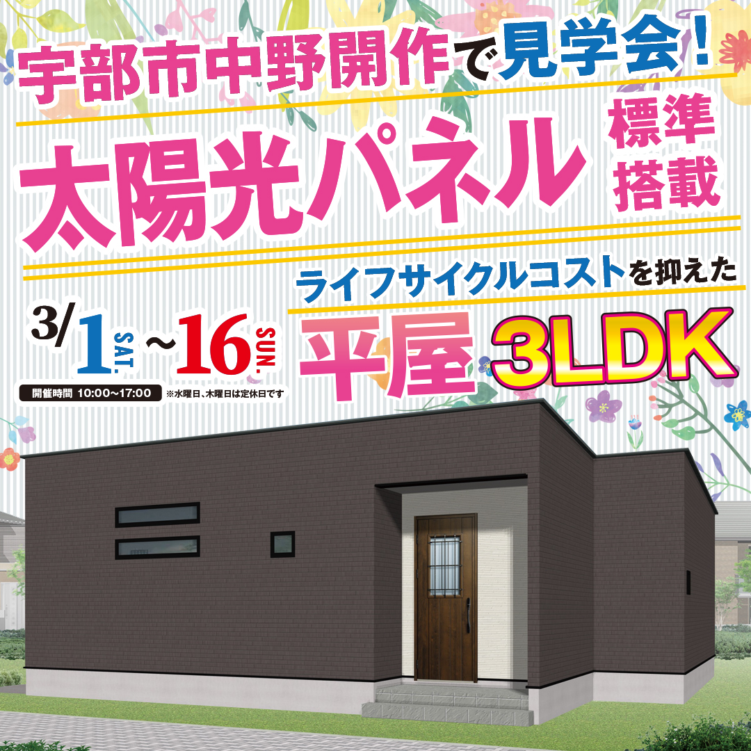 【宇部市】3LDKの平屋に和室付き!宇部市小串で必見の見学会がOPEN!
