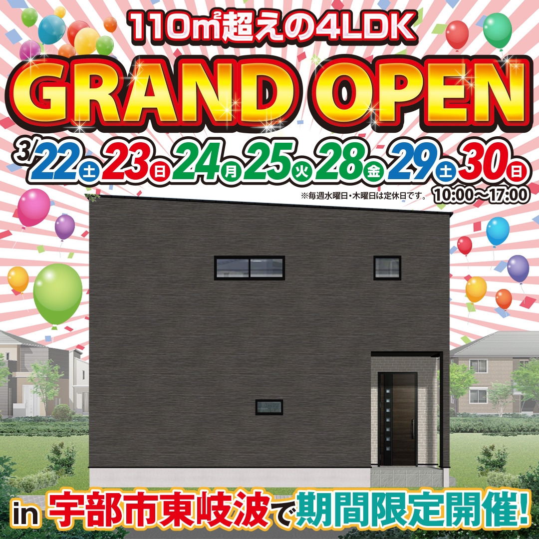 【宇部市】110㎡越えの4LDKが誕生!宇部市東岐波で収納力抜群の2階建て見学会開催