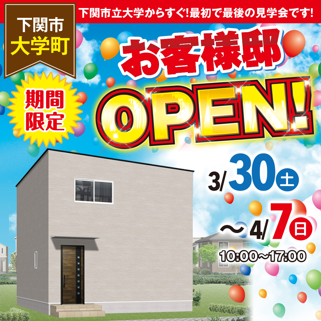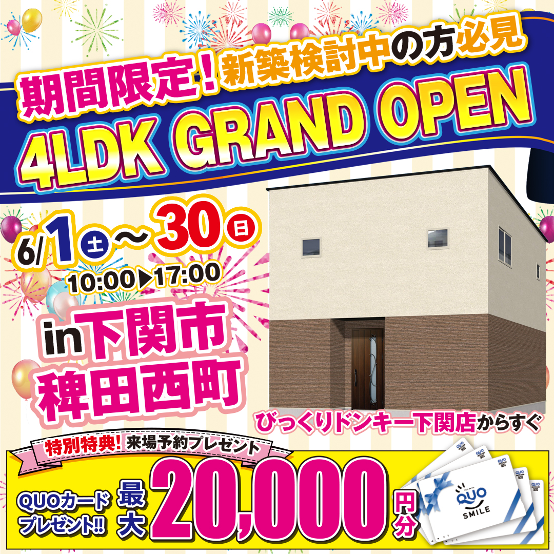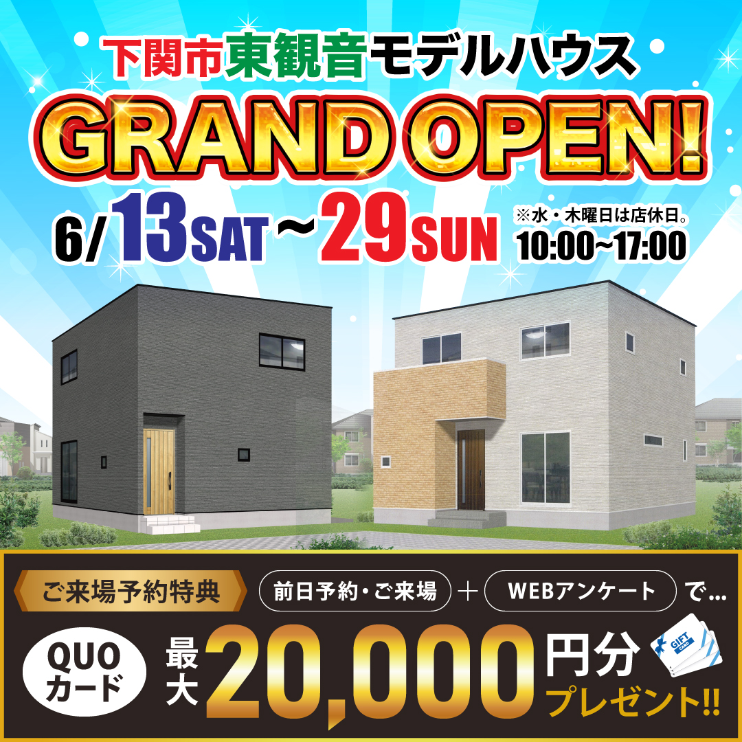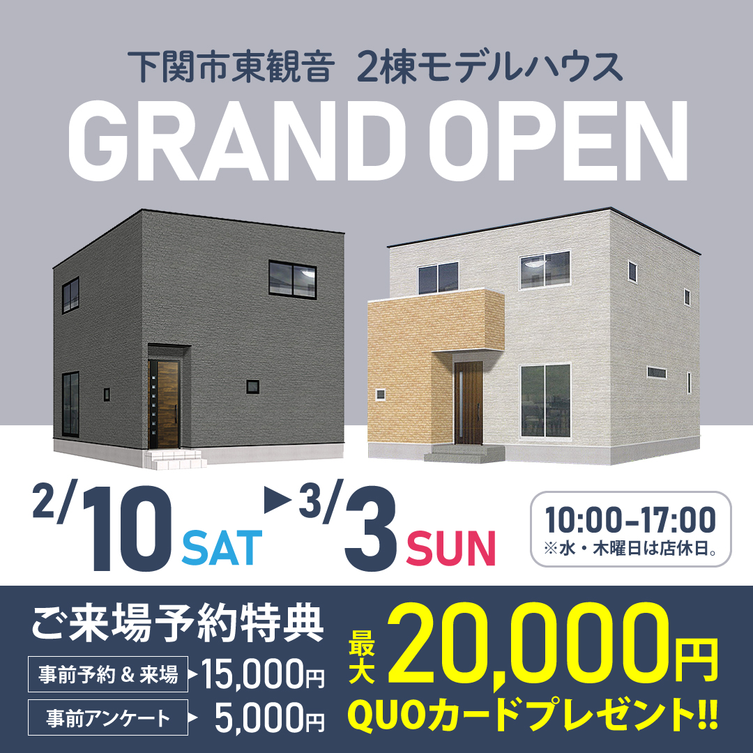 【下関】東観音で豪華2棟見学会!今ならQUOカード最大20,000円