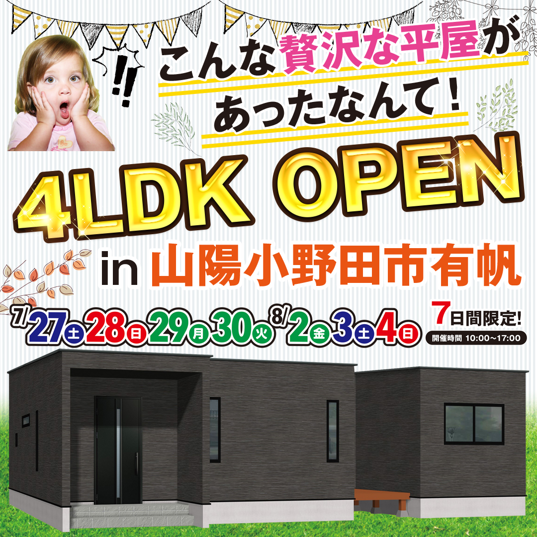【山陽小野田市】贅沢な間取りの4LDK!有帆で平屋見学会開催!