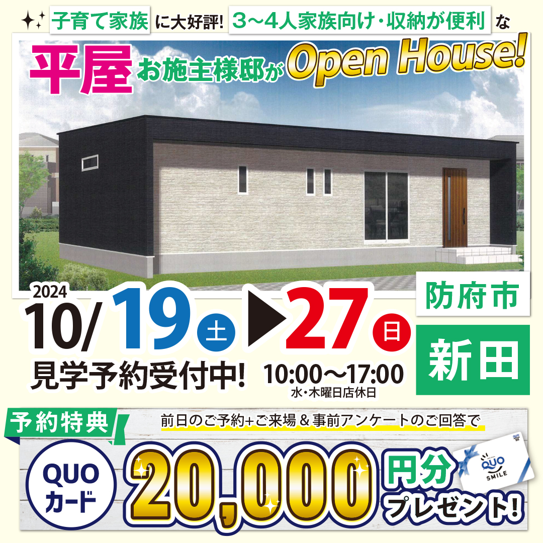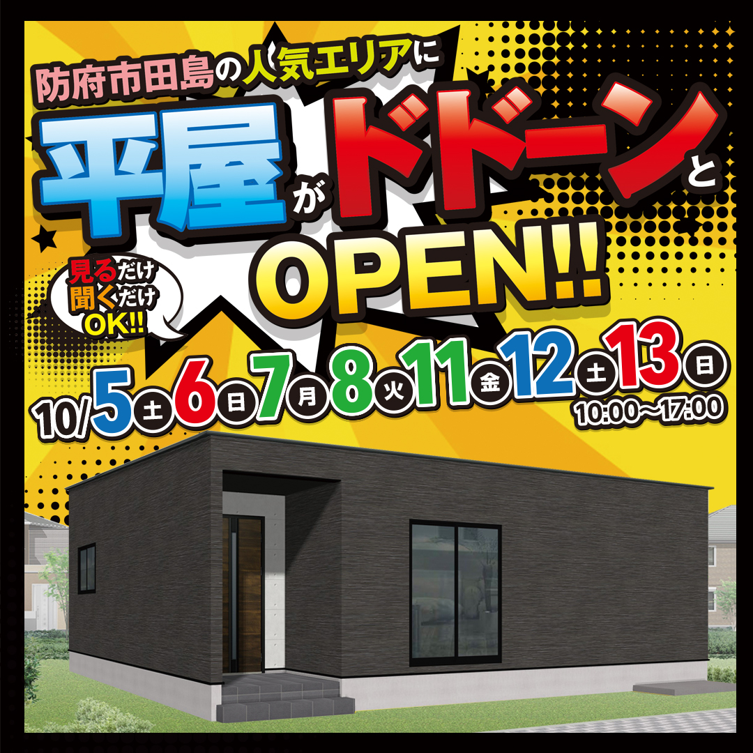 【防府市】子育て家族に大好評☆防府市新田で平屋見学会OPEN!