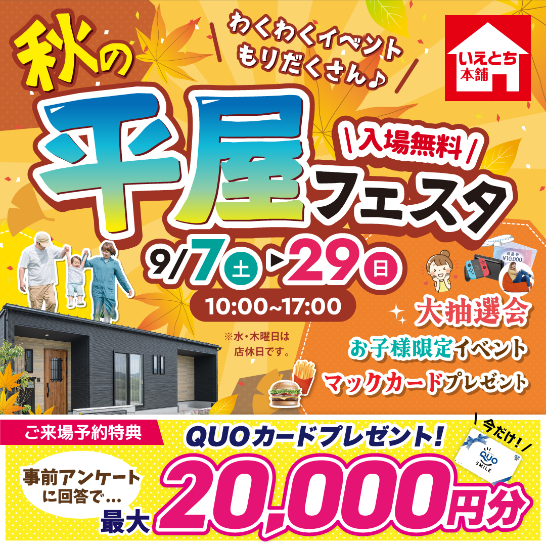 【山口中央店】入場無料!いえとち本舗*秋の平屋フェスタ開催!