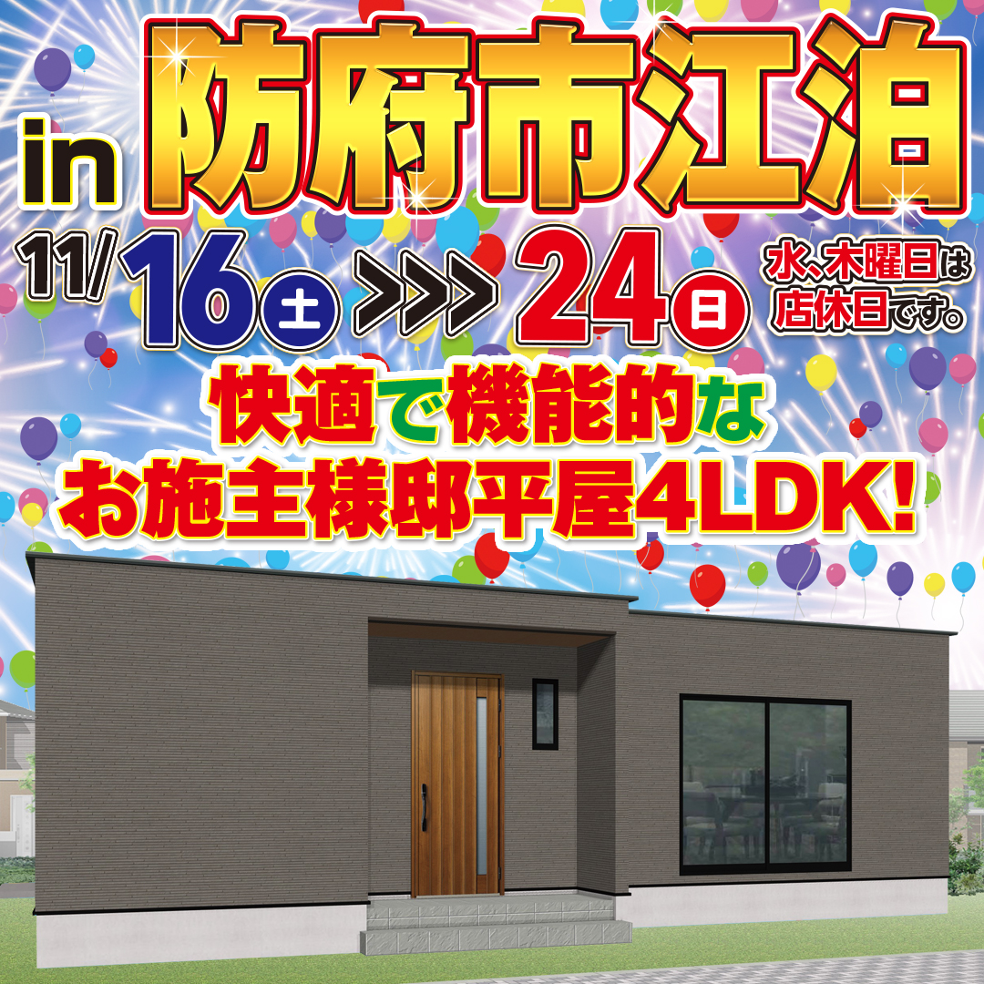 【防府市】快適で機能的な、平屋4LDK見学会開催!in防府市江泊