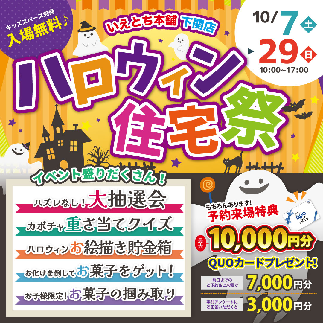 【下関店】ハロウィンイベント開催!来場予約でクオカード1万円プレゼント♪