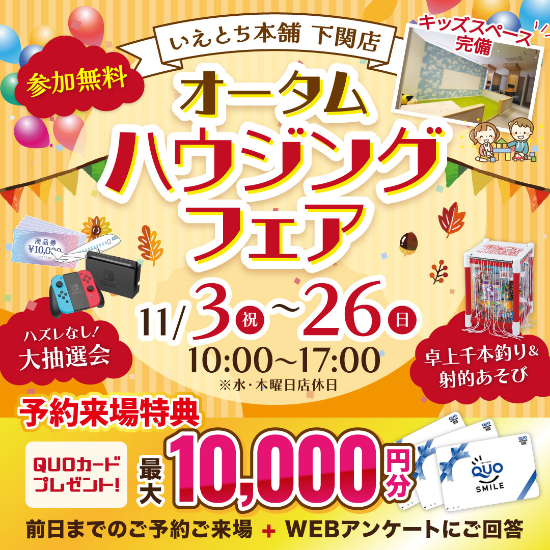 【下関店】オータムハウジングフェア!来場予約でクオカード2万円分プレゼント