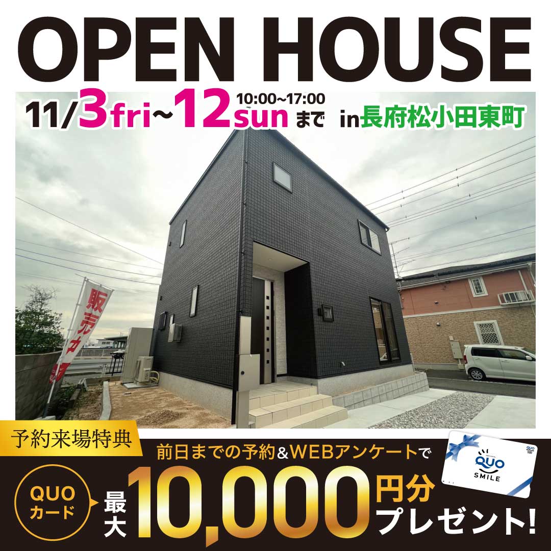 【下関店】東観音モデルハウスOPENHOUSE!来場予約でクオカード1万円プレゼント♪