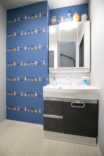 子ども部屋を将来的に区切れるようにしたこと、玄関ニッチ、大好きなディズニーのクロスを使用した洗面室、あとはブラックで統一したトイレもお気に入りです。 -