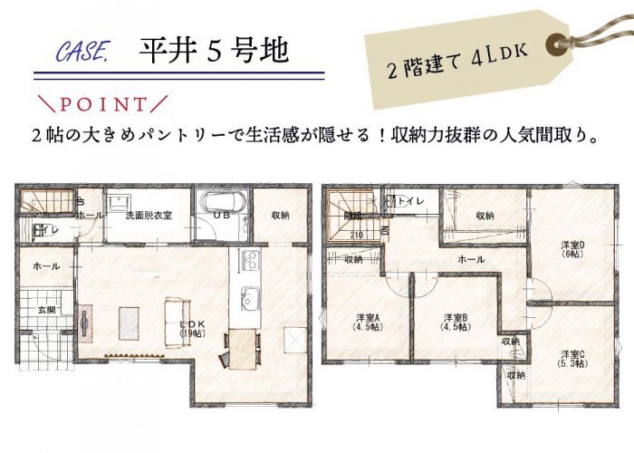 こちらの物件は、子育て世帯が「暮らしやすい」と感じられるポイントを丁寧に盛り込んでいます。特に独立洗面室は、忙しい朝でも家族が動きやすく、生活のストレスを軽減してくれる設計です。全居室収納も備えているため、成長に合わせて持ち物が増えても安心。太陽光6.6kWの搭載により、家計に優しい点も魅力です。実際に現地をご覧いただくと、周辺環境の静かさや日当たりの良さがより実感できます。ぜひ一度ご家族皆さまでお越しください。 | ||