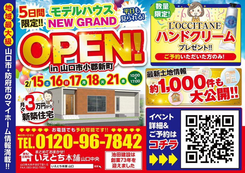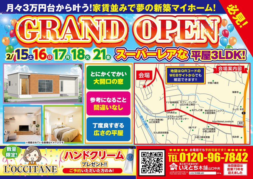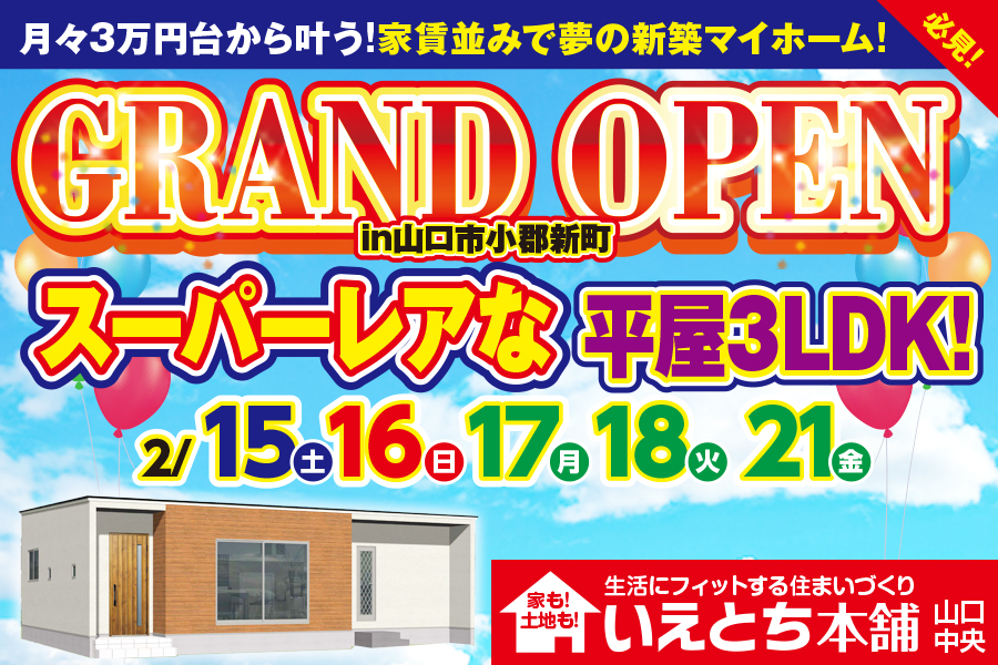 - 山口市小郡新町でスーパーレアな平屋3LDKの完成見学会を開催します!