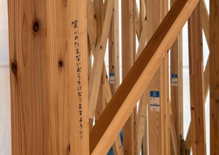 柱にはご家族みなさまでお名前や新生活への想いを書き込んでいただき、